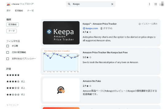 また「Keepa」のスマートフォン版アプリも用意されているのだが、Chrome ウェブストアはPC専用のサービスなので同じものは使えず、操作が煩雑になる。可能ならPCで利用することをおすすめする。