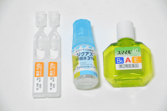 また目に傷がついて炎症を起こすこともたびたびあるので、炎症止めの目薬をもらうこともある。筆者は市販されている1回使い切りタイプの抗炎症点眼薬を常備して、目の調子が悪くなったら使い、数日経っても改善しない時は眼科にかかるようにしている。