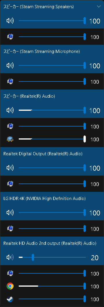 ゲーミングPCをお持ちの方なら、音声デバイス設定をよく見れば、意外なところに複数の音声デバイスが存在するはず。便利な使い分けを思いついたら本ソフトでお試しいただきたい。