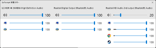 アプリごとに音量や再生デバイスを調整できるフリーソフト「EarTrumpet」