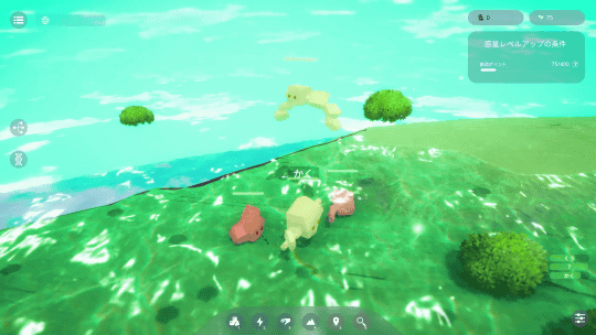 これだけだと完全にシミュレーターだが、プレイヤーが介在する要素も多い。エサをあげたり繁殖を促したりすることでゲーム内のポイントを獲得でき、これを使って新たな要素を解禁できる。
