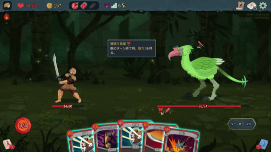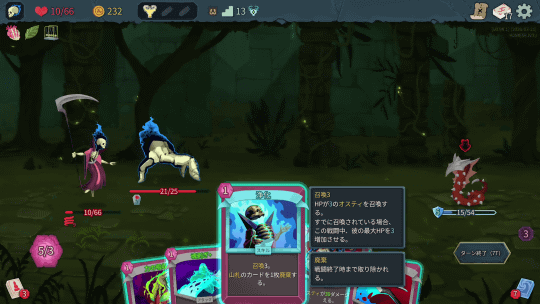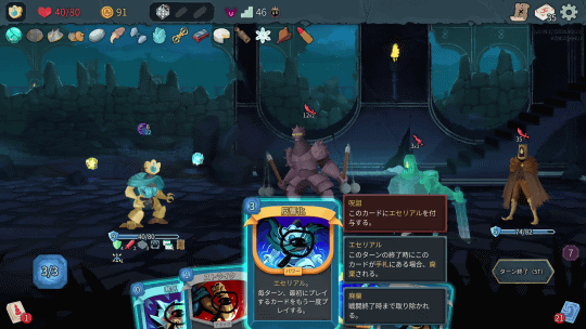 なお筆者は最初のエリートモンスターであっさり撃破された。物理で大ダメージを叩きこんでくる敵に対して、あまり効果的な防御方法がなく、相手のHPを削りきる前にこちらが力尽きてしまった。カードを自身で捨てた際にノーコストで効果を発動できる「スライ」という能力をもっと活用したいところだ。