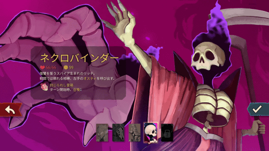 次の「ネクロバインダー」は、名前のとおりの死霊使いで、「オスティ」というペットを召喚して戦う。「ネクロバインダー」自身にも戦闘能力はあるが、「オスティ」を使役する行動の方が高い威力があることが多い。