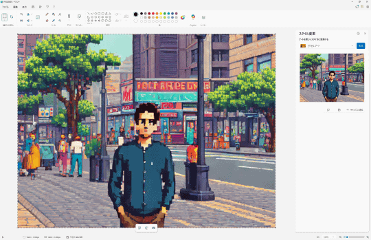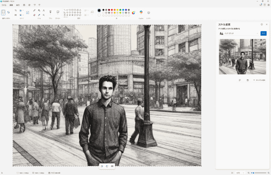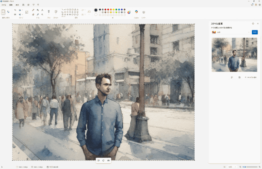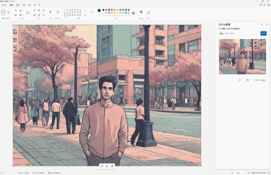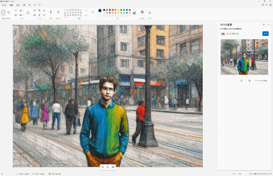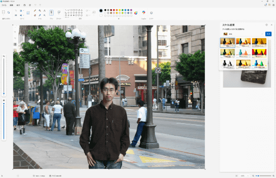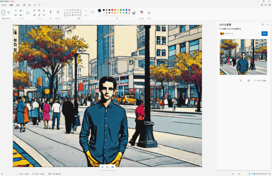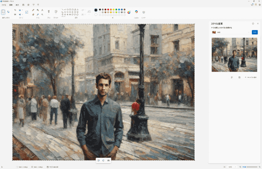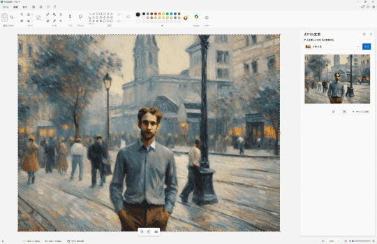 機能名からお気づきの方も多いと思うが、以前から「フォト」に実装されているAI機能「リスタイル イメージ」に類似したものだ。「フォト」アプリはメインの被写体を残しつつ背景を加工するという方向性だったが、「ペイント」は画像全体を加工する。