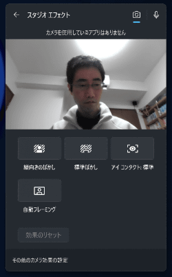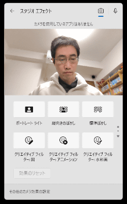 まずは最も人気の高い機能と思われる「Windowsスタジオエフェクト」。カメラ映像に背景ぼかしなどの機能を加えるものだ。実は本機能はCopilot+ PC専用ではなく、もっと低い性能のNPUを搭載したPCでも一部の機能が使用できるものがある。