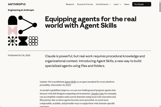 2025年から2026年にかけて、大規模言語モデル(LLM)のトレンドは、これまでの文章を作るAIから、自らタスクをこなす「自律型エージェント」へ変化してきている。この流れの中で、Anthropicが打ち出した「Agent Skills」は、汎用的なAIに特定の専門スキルを授けるための、スマートな仕組みとして注目を集めている。
