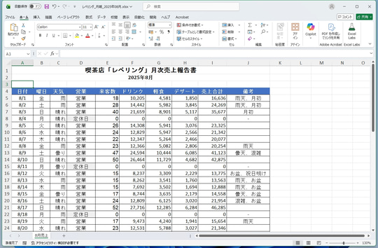 しばらく待つと、見事なレポートを書き上げてくれた。年間を通しての来客者数や売上、単価を算出してグラフ化した上、詳細な分析と経営提言まで行ってくれた。