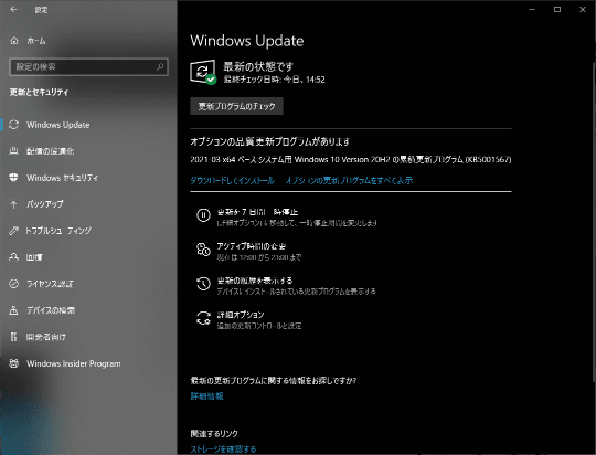 「C」リリースを利用したい場合は、「設定」アプリの[アップデートとセキュリティ]-[Windows Update]セクションに移動し、[アップデートを確認]ボタンを手動でクリックします。[オプションの更新プログラムがあります]というメッセージが表示されたら、[ダウンロードしてインストール]リンクから適用が可能です。