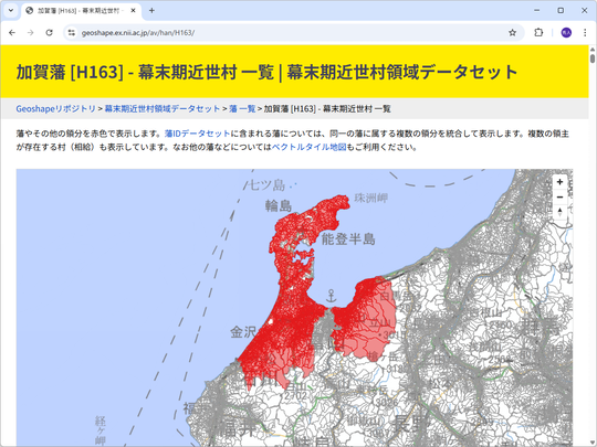 すると、「藩IDデータセット」の加賀藩のページへアクセスできます。