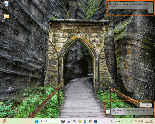 デスクトップ右下に配置されたアイコンをクリックすると、今日の写真をより詳しく知るために「Bing」で検索できます――もちろん 「Microsoft Edge」 で!