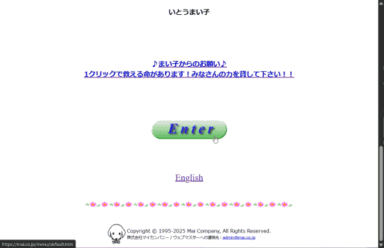 ホームページにアクセスすると、2025年4月~2026年3月のカレンダーの画像とともに、何ともノスタルジーを感じさせる[Enter]ボタンがお出迎え。伝統的デザインを守りつつ、現在も更新されていることがわかります。インデックスページに進めばそこはもう2000年代。花をあしらった罫線が手作りの良さを感じさせてくれます。