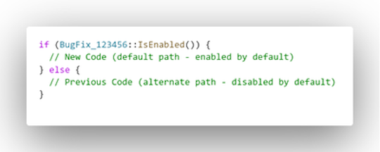 まず、問題のあった箇所を修正する際、そこにフラグ(feature flags)を設定します。次に、問題箇所のコードを残したまま、修正済みのコードを挿入し、フラグが有効な場合にだけ機能するようにします。