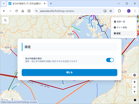 窓の杜では過去に有志の方が「Google マップ」のマイマップにまとめた航路集を紹介しています。もしよければそちらもどうぞ。情報が更新されていないところもありますが、その分、廃止航路もたどれます。