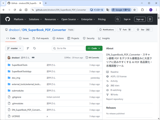 「DN_SuperBook_PDF_Converter」の動作はローカルPCで完結するため、データがクラウドサービスへ送出されることはありません。ただし、必要な依存ツールを用意して、自分でビルドしなければならないのはちょっとハードルが高いかも。