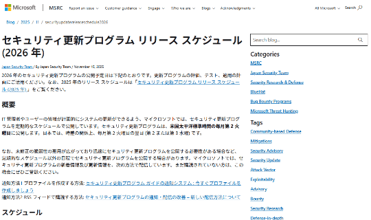 Microsoft製品に対する月例のセキュリティ更新プログラムは毎月第2火曜日(米国時間)にリリースされますが、日本では時差の関係上、その翌日(第2水曜日または第3水曜日)の公開となり、今回は日本の祝日にあたった、というわけです。