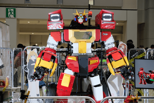 モビリティゾーンのなかでも、一際目立っていたのが勇者技術研究所が開発した、乗用車変形ヒューマノイドロボット「勇者ファイバリオン」。4輪EV乗用車からヒューマノイドロボットに変形することができるというもの。ロボットとして、マスタースレーブ式で両腕の操作が可能で、子ども達が楽しそうに遊んでいた。