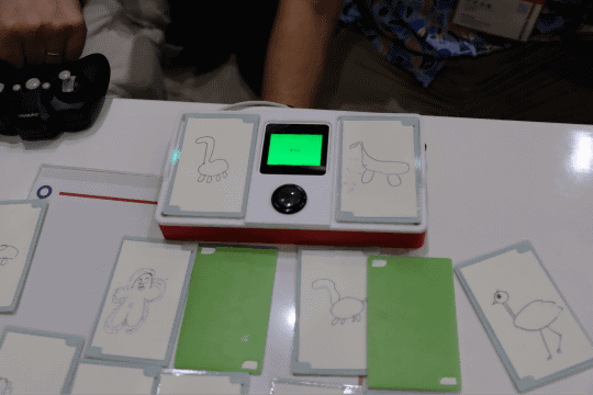 メイカースペースKM1ユーザー会は、東芝の川崎本社に設置されたメイカースペース「KM1」を利用する同社社員による作品を展示。IoTを使ったカードゲーム、USBメモリの抜き忘れを防止するUSBハブなどユニークな作品を見ることができた。