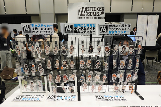 ステッカーといえば、大量生産が当たり前だが、1種類1枚を大量に作るというアプローチを試しているとのこと。ブースにはさまざまなメイドが展示されており、好みの絵柄を選ぶのが楽しい。また、耐水性もあり、意外と長持ちするそう。ほかにもハンカチやキーホルダーなどを制作しており、好評であれば、ほかのアイテムにもチャレンジしたいということだった。