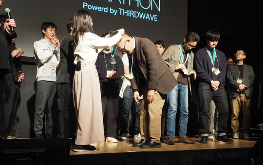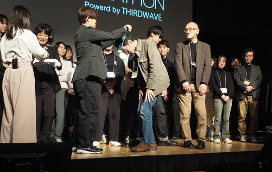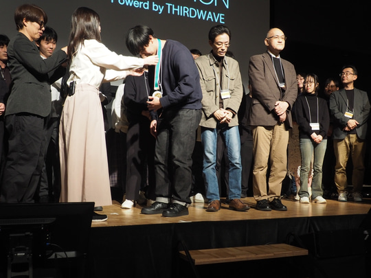 優勝チームは「たい焼きテクノロジーズ」で、次点は「クロスジェネレーション」となった。決め手となったのは、AIをフル活用して開発している点と、数日前に清水氏が発表したばかりの3Dスキャン技術をすぐに取り入れた点である。優勝チームのメンバーには、千代田さんと伊藤氏からメダルが授与された。