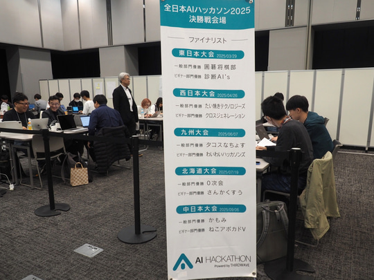 今回の「全日本AIハッカソン2025」は、プログラミングの経験がある人を対象にした「一般部門」とプログラミング未経験者が対象の「ビギナー部門」の2部門で実施された。まず、2025年3月から全国5カ所(東日本、西日本、九州、北海道、中日本)で地方大会が開催され、それぞれの部門で最優秀賞となったチームが決勝戦に進んでいる。
