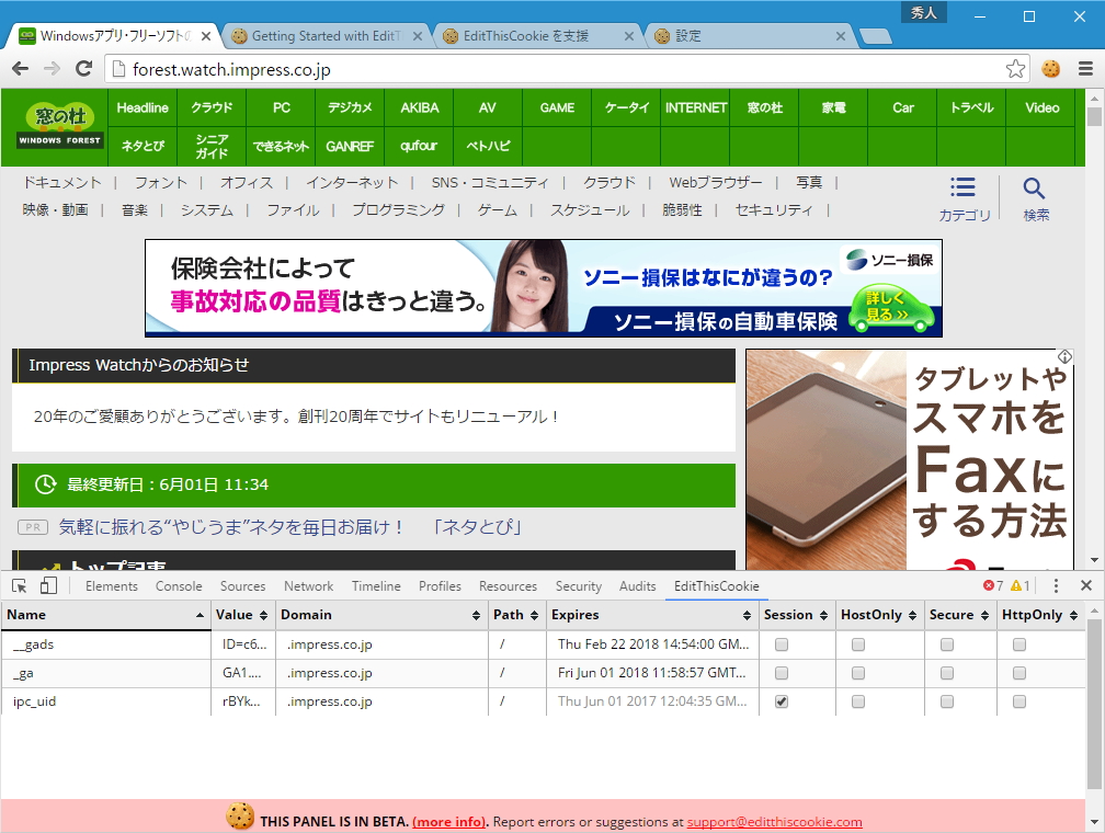 閲覧ページのCookieを閲覧・編集できるGoogle Chrome拡張機能「EditThisCookie」