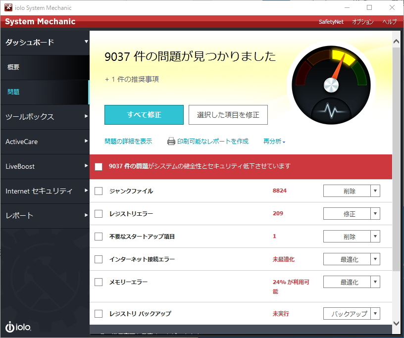 “定義ファイル”を使って自動でパソコンを修復・最適化「iolo System Mechanic」