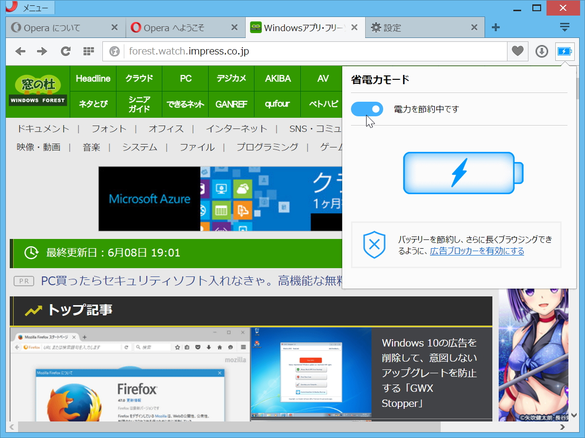 “省電力モード”を搭載した「Opera 38」が安定版に。バッテリー駆動時間を約40%改善
