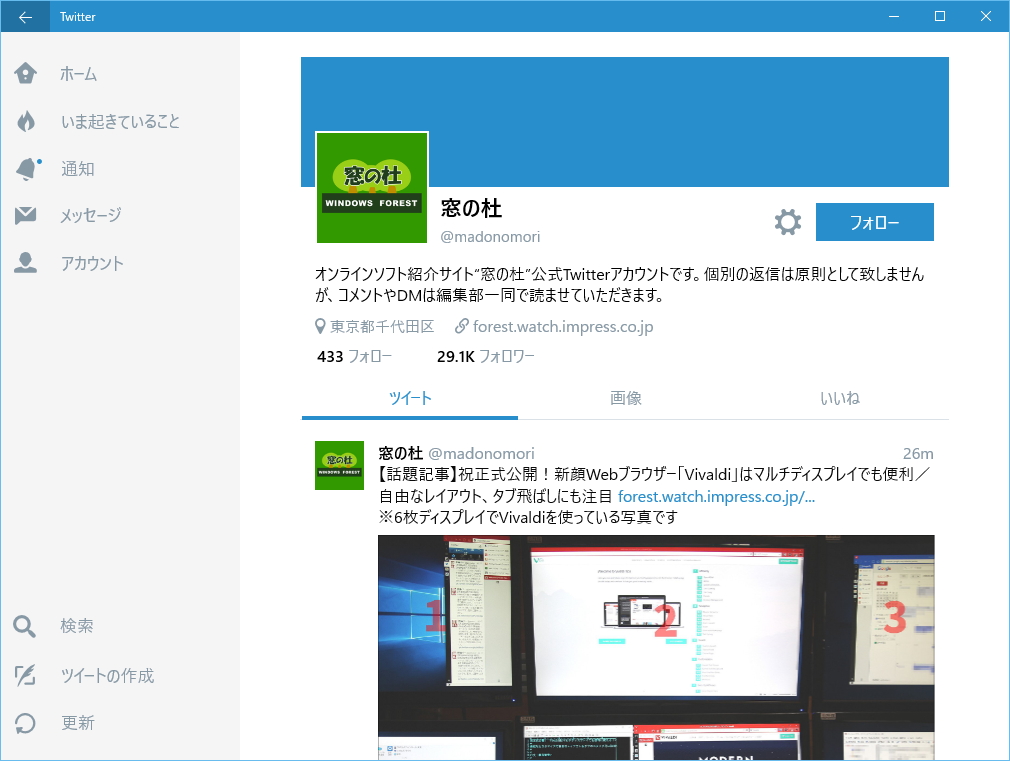 Windows 10向け「Twitter」がメジャーバージョンアップ。モバイルでも利用可能に