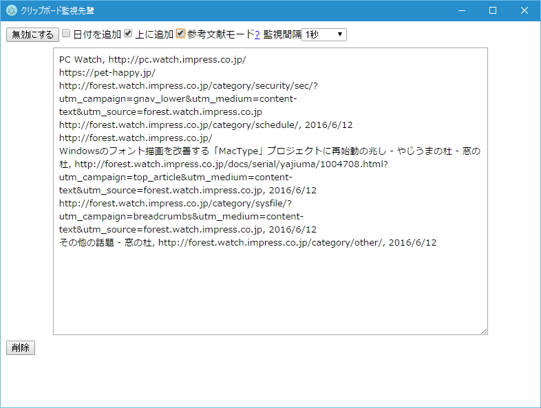 クリップボードのテキストを勝手にストックしてくれる「クリップボード監視先輩」