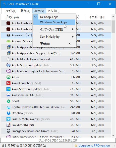 Windows ストアアプリのアンインストールに対応した「GeekUninstaller」v1.4
