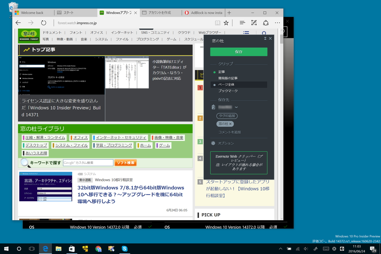 「Windows 10」の最新プレビュー版が公開。「Evernote Web Clipper」が「Edge」に対応