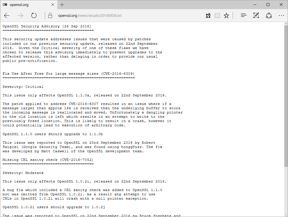 「OpenSSL」に14件の脆弱性、修正を施した最新版v1.1.0a/v1.0.2i/v1.0.1uが公開