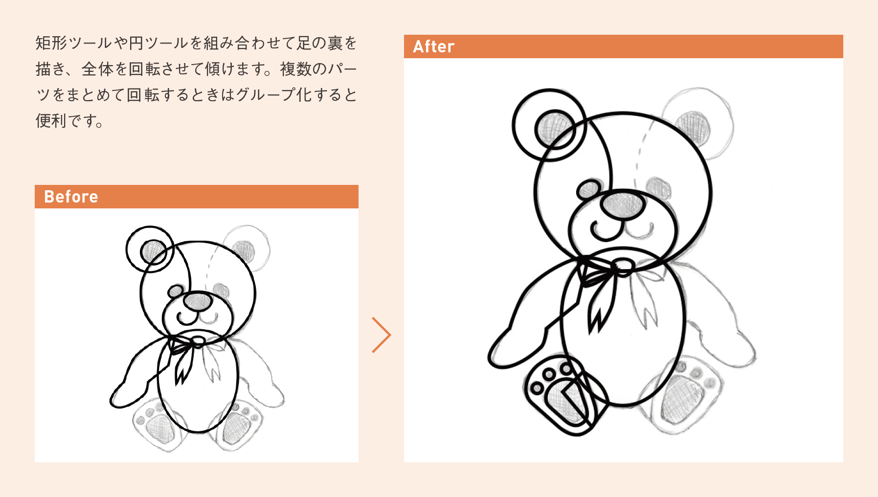 無料ドローツールでクマのイラストを描く! 第4回(全5回):パーツをグループ化して操作しよう