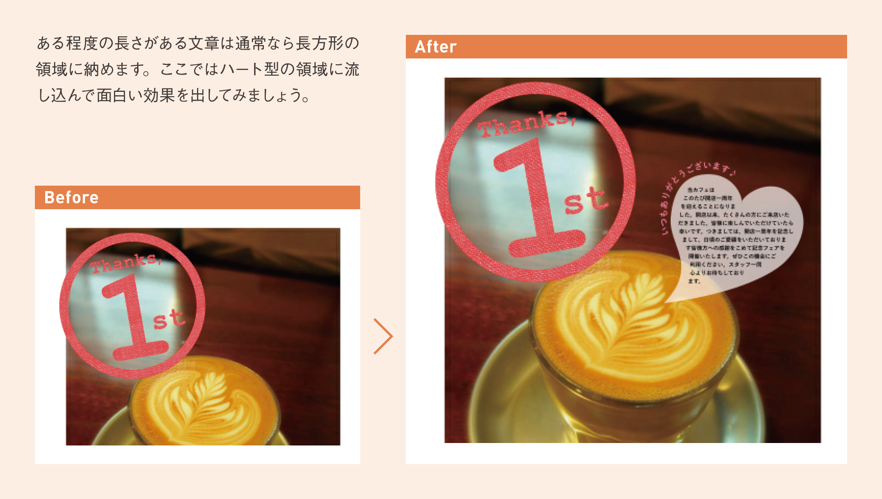 おしゃれカフェ宣伝チラシを制作する! 第4回(全5回):ハート図形に文章を配置しよう