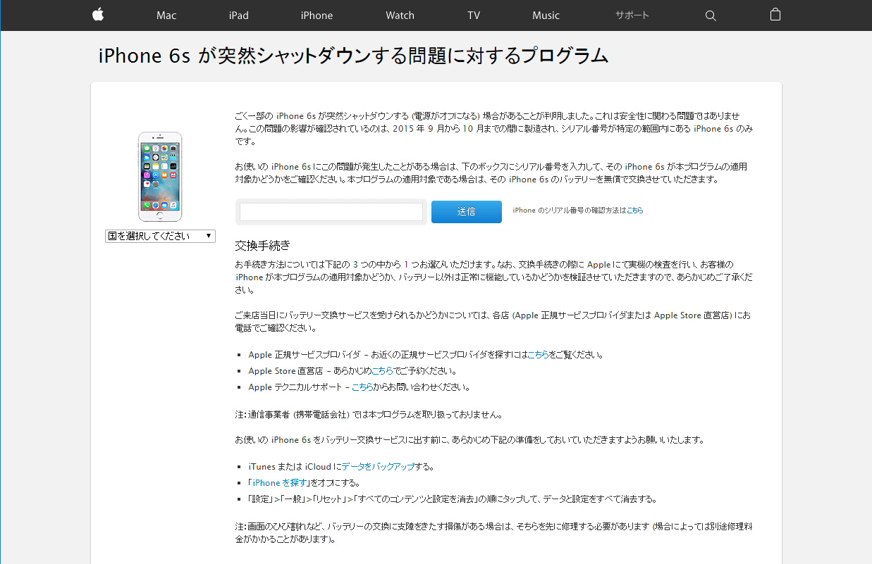 iPhone 6sが突然シャットダウンする場合のバッテリー無料交換プログラムに注目(1月第5週)