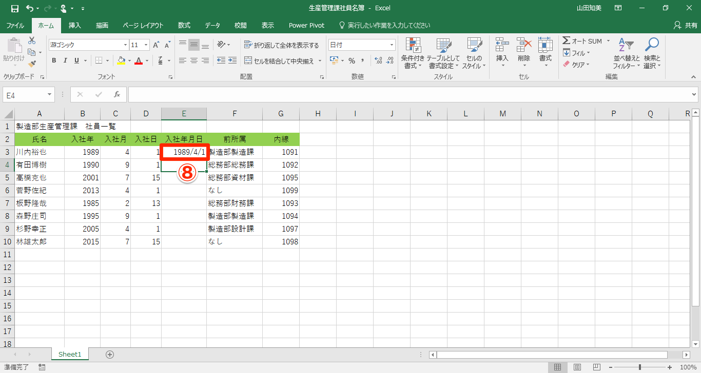 Excel方眼紙にありがち…エクセルで分割入力されている年月日を日付データに変換するテク