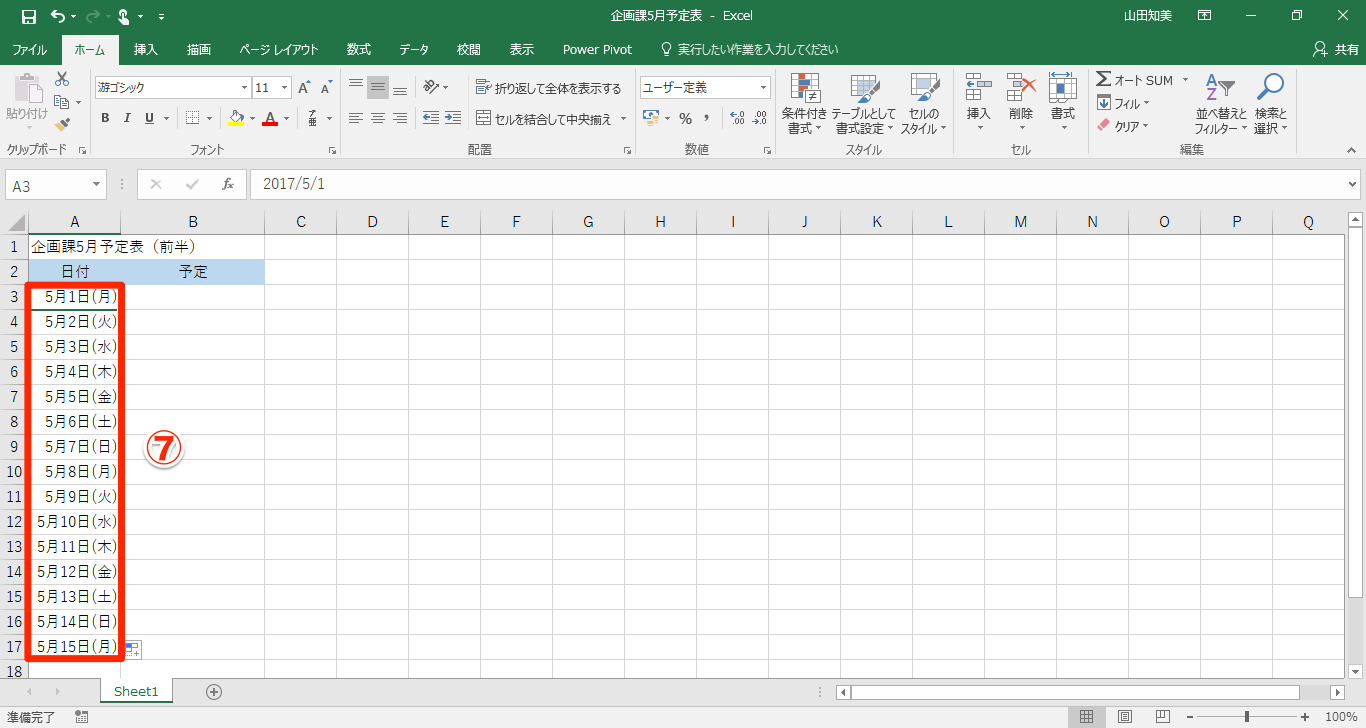 【Excel効率化】曜日を調べるのは意外と面倒…エクセルで日付から曜日を自動算出して予定表に加えるテク