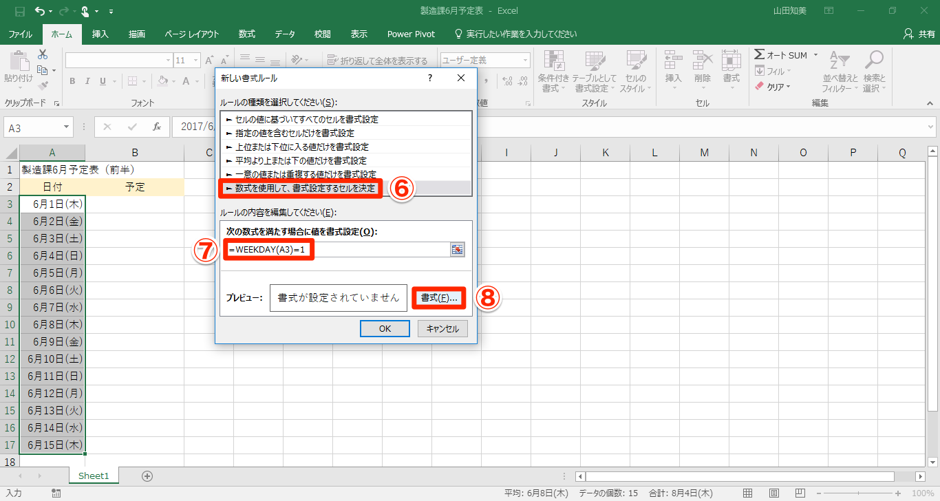 【Excel】「土曜は青、日曜は赤」予定表の曜日を色分けしたい! エクセルで日付を見やすく書式設定するテク(3/8)