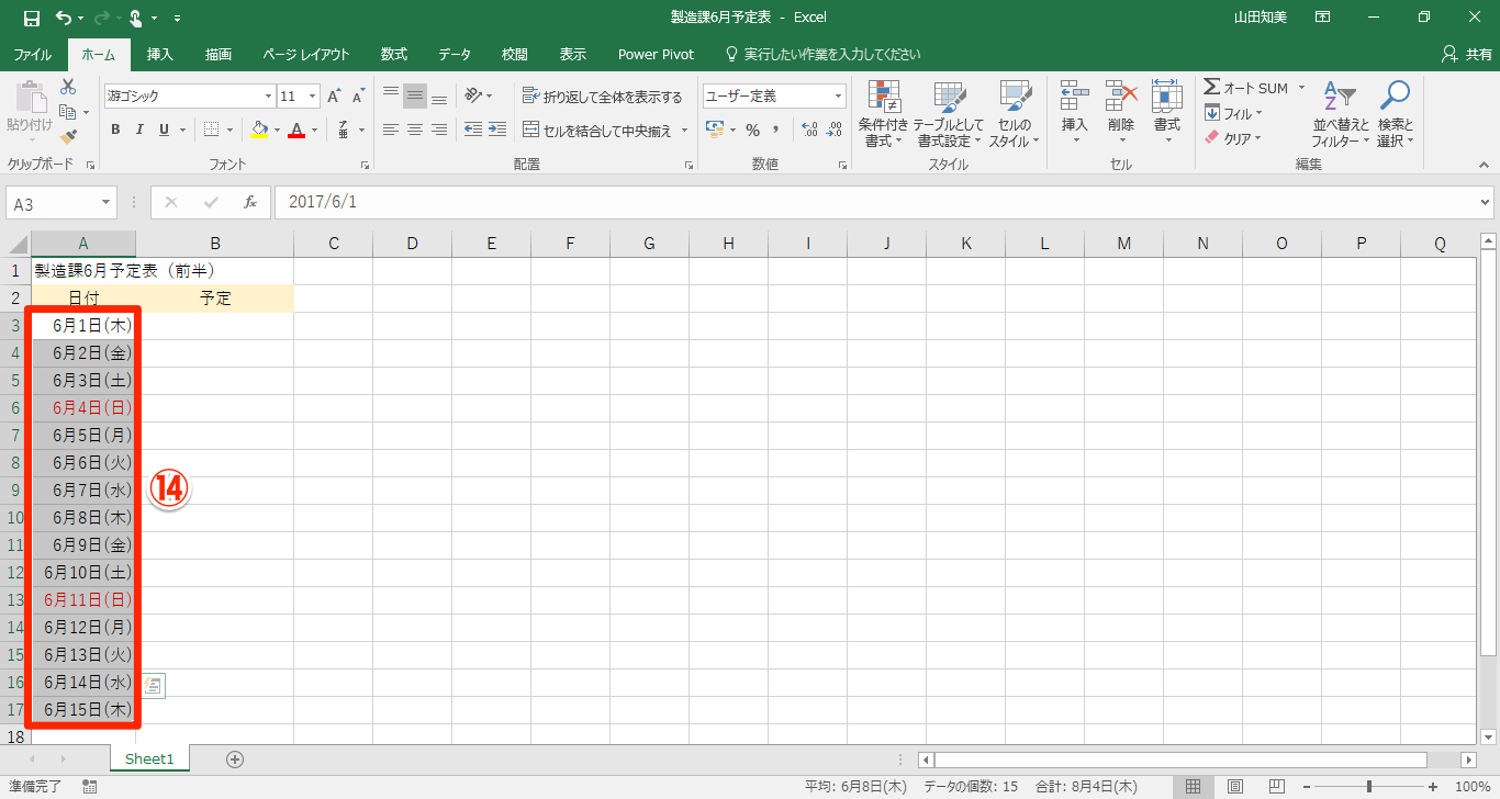 【Excel】「土曜は青、日曜は赤」予定表の曜日を色分けしたい! エクセルで日付を見やすく書式設定するテク(7/8)