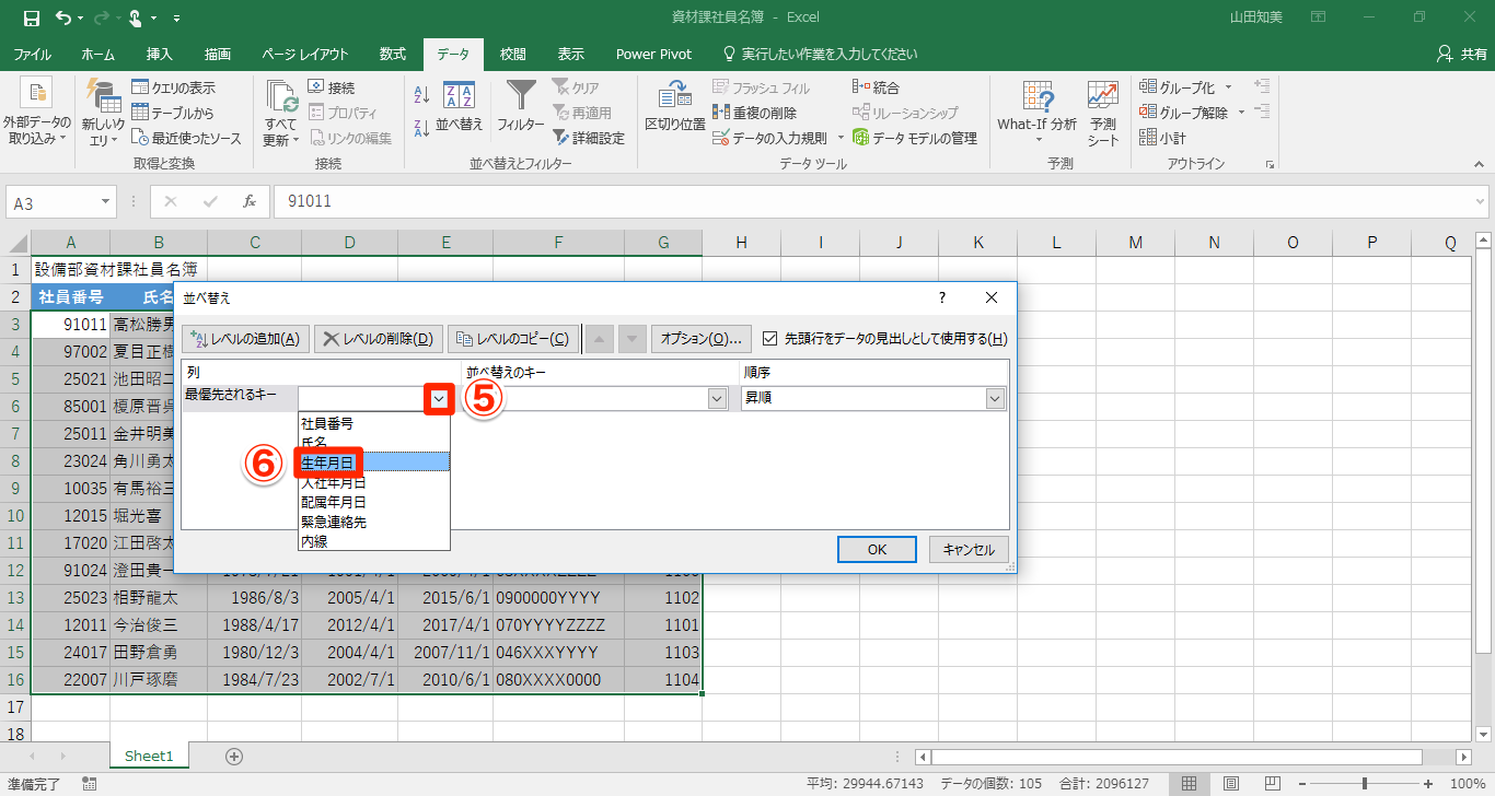 【Excel】表のデータを五十音順や入社年順などで自由に並べ替えるエクセルのテク2選