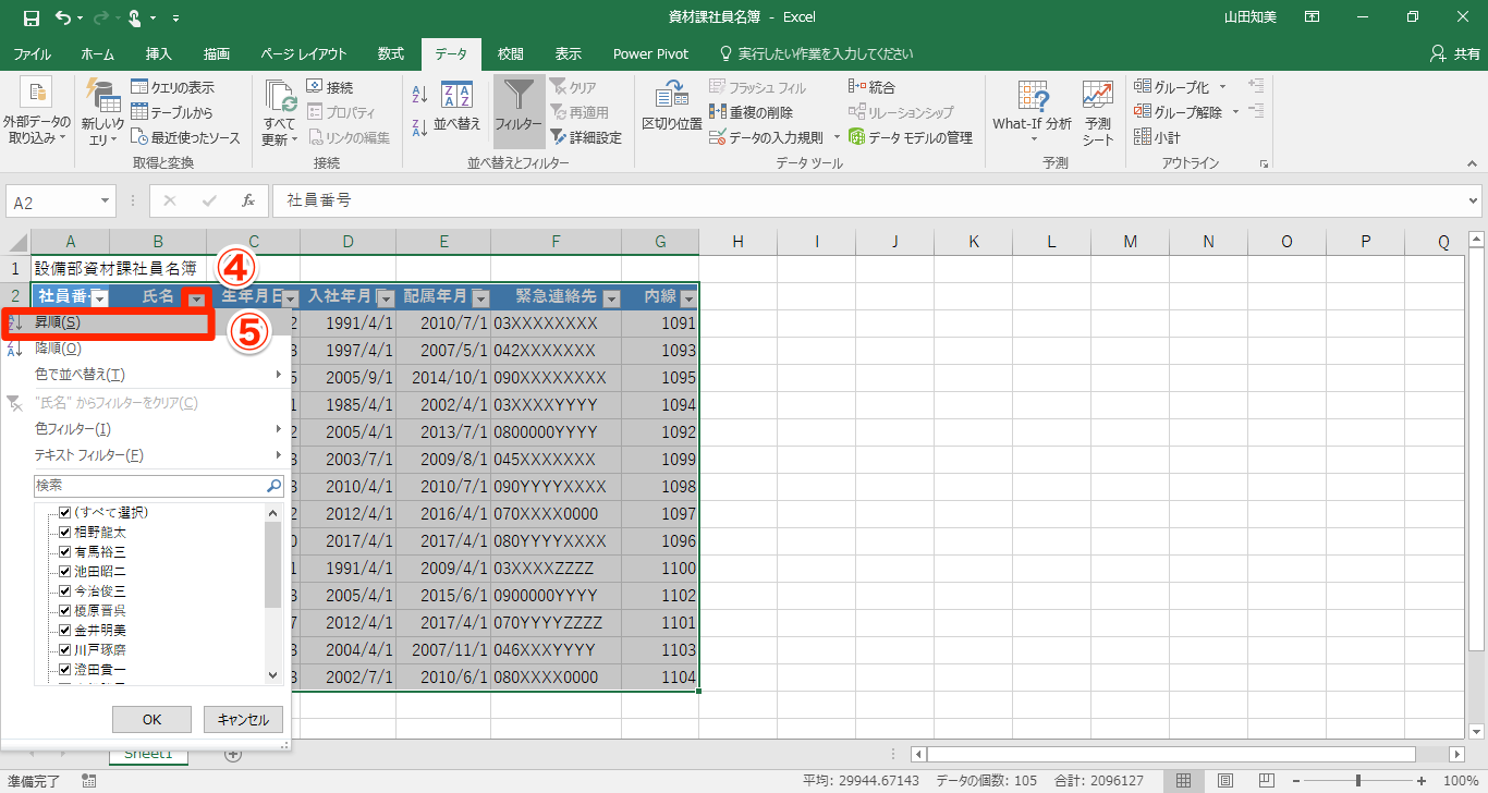 【Excel】表のデータを五十音順や入社年順などで自由に並べ替えるエクセルのテク2選