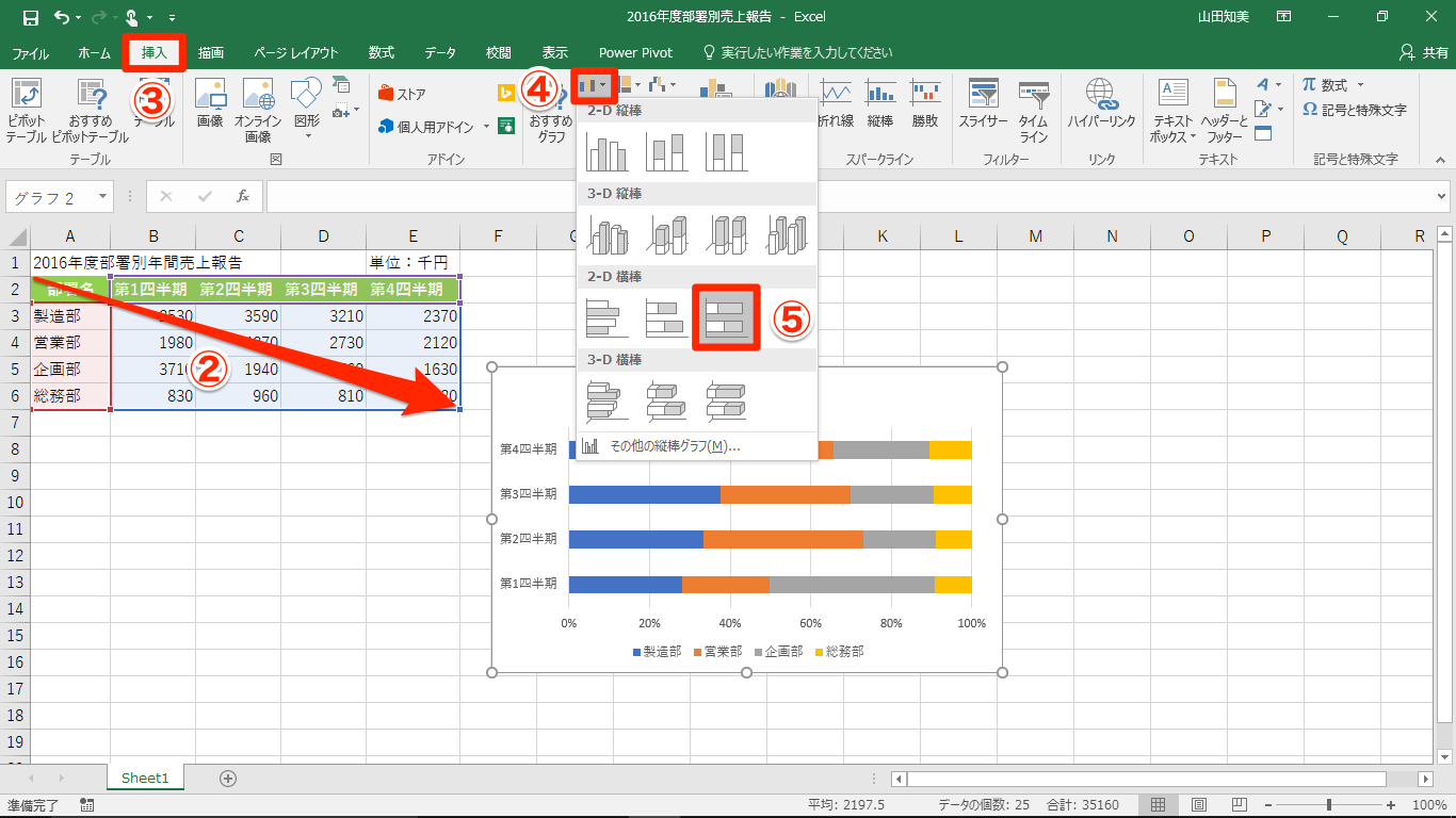 【Excel】積み上げ棒グラフは割合の変化がわかりづらい!を解決するエクセルのテク