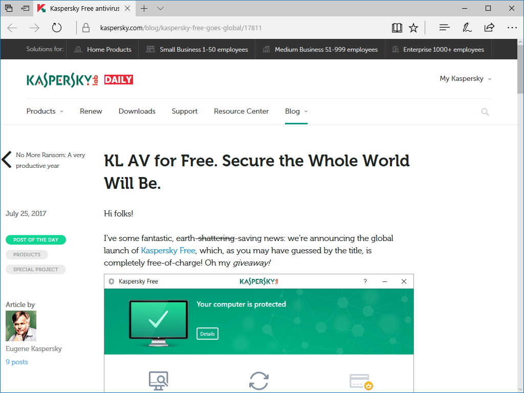 【人気記事】カスペルスキー、無償アンチウイルスソフトを全世界リリース