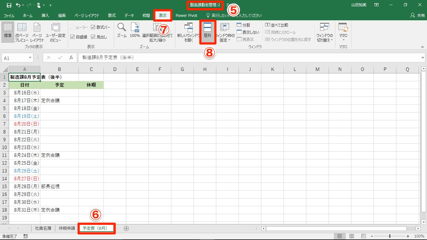 【Excel】2枚のシートを並べて作業したい!エクセルで複数のシートを同時に表示するテク