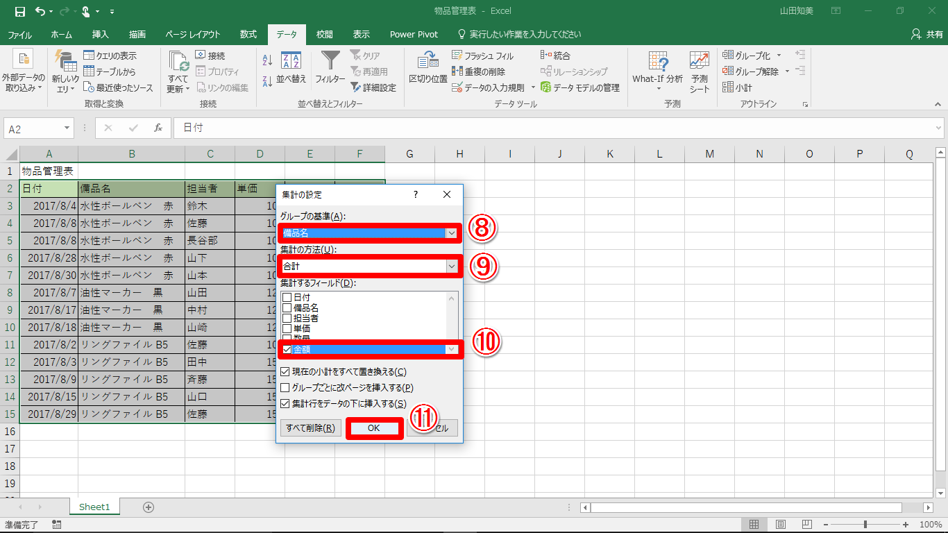 【Excel効率化】急に「商品ごとに集計して!」と頼まれた!エクセルで簡単に項目ごとの小計を求めるテク