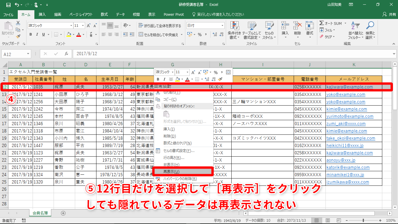 【Excel】データ量が多すぎて見比べたい行が見付からない!エクセルで不要な行や列を一時的に非表示にするテク