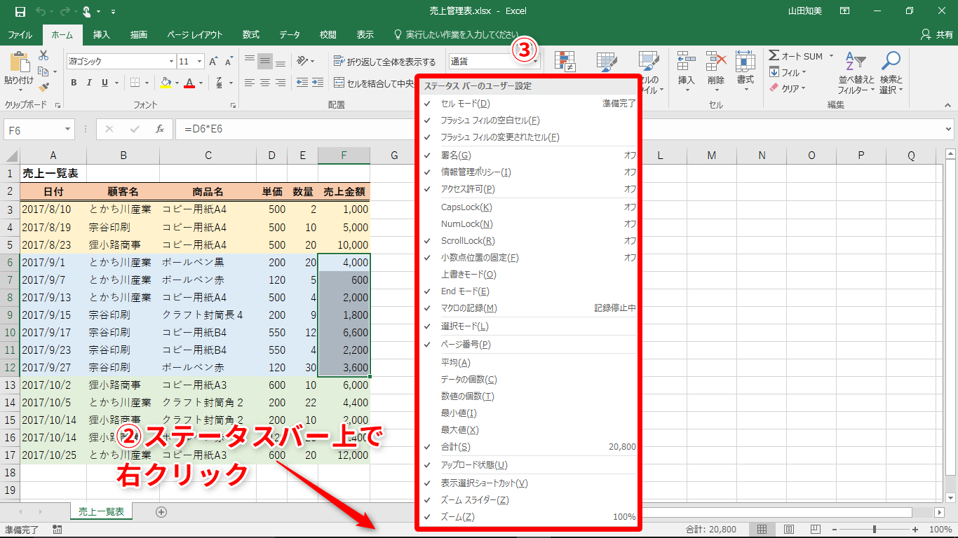【Excel】選択するだけで合計・平均・最大値などを確認!エクセルで式を書かずに計算結果を表示するテク
