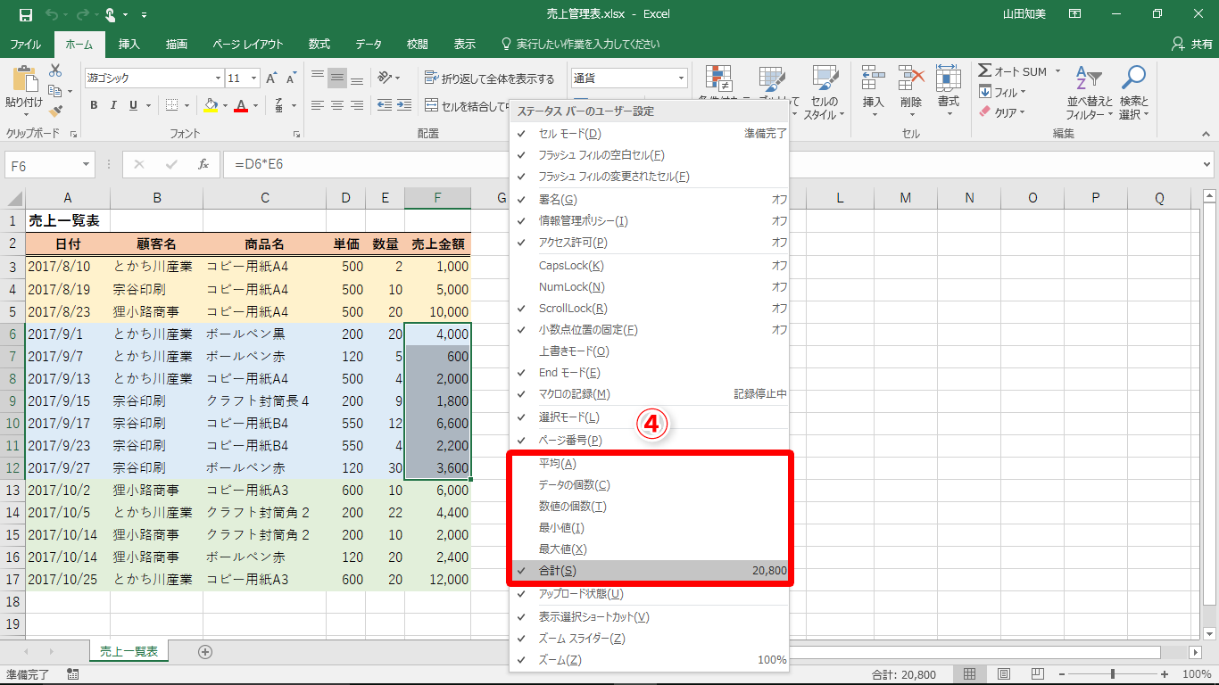【Excel】選択するだけで合計・平均・最大値などを確認!エクセルで式を書かずに計算結果を表示するテク