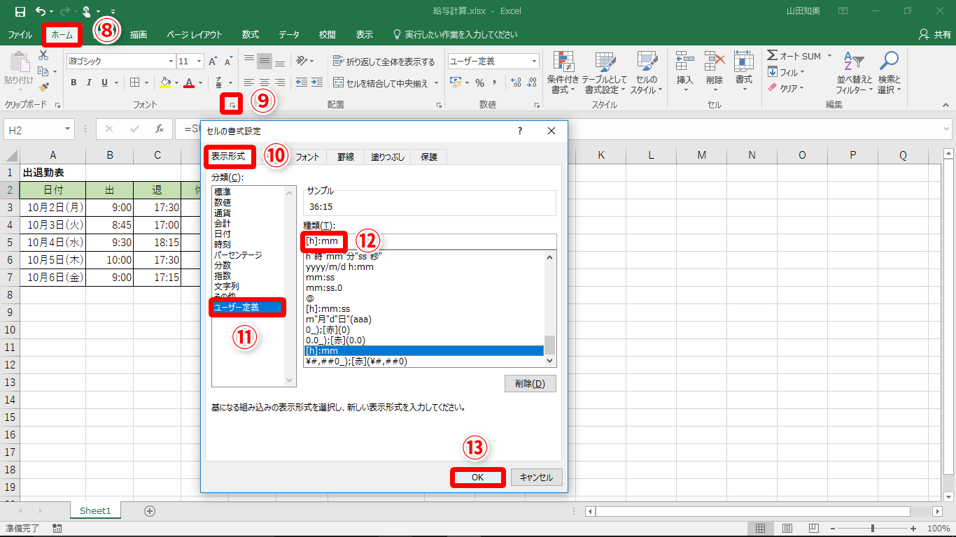【Excel】時間の計算がうまくできない!給与計算で必須となるエクセルのテクニック