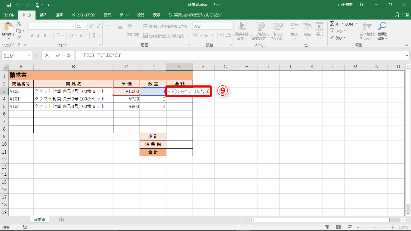 【Excel】明細の未入力の金額欄に「¥0」と表示されるのを防ぐ!エクセルのIF関数の応用テク